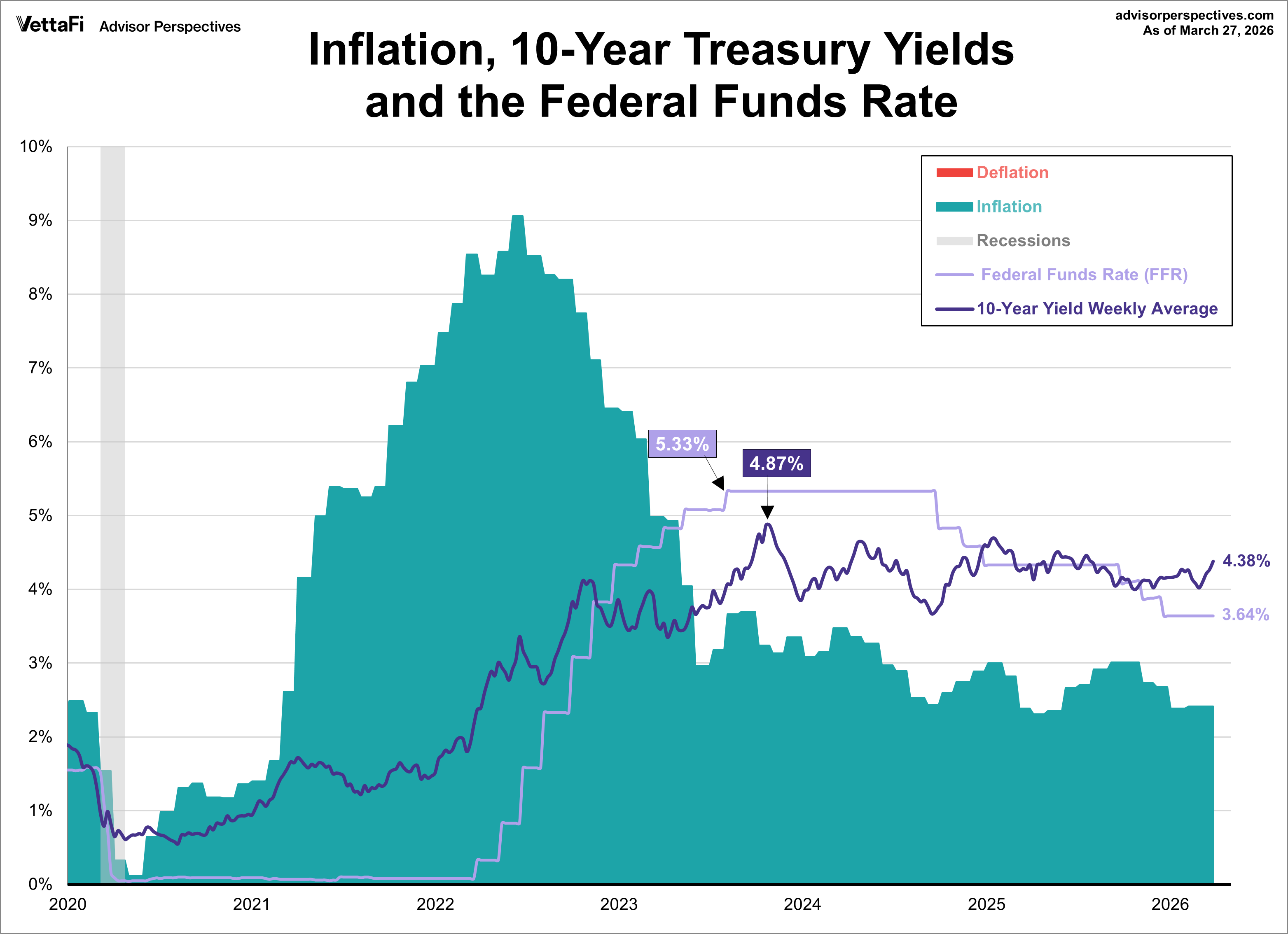 At the end of March, the 10-year yield weekly average stood at 4.38% while inflation was at 2.41%. At their last meeting, the Fed held the federal funds rate (FFR) steady in the 3.50%-3.75% range for a second consecutive meeting. This move was widely anticipated and keeps the central bank’s range at its lowest level since November 2022. The statement from the meeting revealed the Committee believes “inflation remains somewhat elevated,” but that they are strongly committed to returning inflation to its 2% objective. The Fed is expected to hold rates steady in the near term, with the CMEFedWatchTool currently projecting a 99% likelihood of rates remaining where they are at their meeting later this month.
