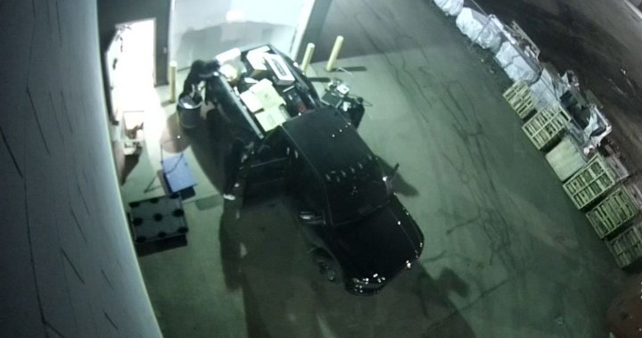 Security video shared with Global News shows thieves precisely lining up their truck, smashing into the shipping door at the Long & McQuade store on 92 Street and 28 Avenue.