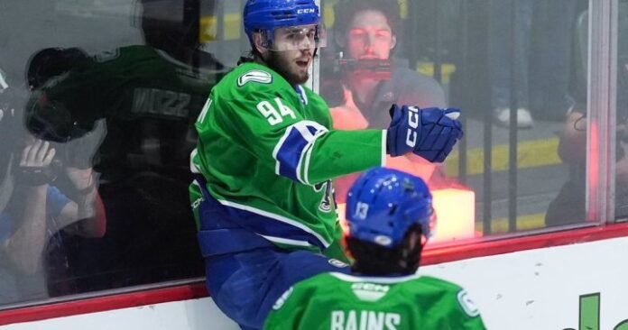 Linus Karlsson scored twice for the Canucks, while Arshdeep Bains had a goal and assist.