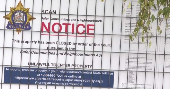 Officers with the Safer Communities and Neighbourhoods (SCAN) unit of the Alberta Sheriffs department obtained a court order ordering the house at 1212 10 Ave. N. to be closed for 90 days, beginning Wednesday at noon.