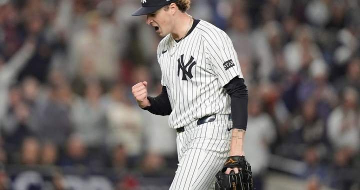 Rookie Cam Schlittler had 12 strikeouts in eight innings for New York. The Yankees scored all four of their runs in the bottom of the fourth inning, with Amed Rosario, Anthony Volpe and Austin Wells each driving in runs.