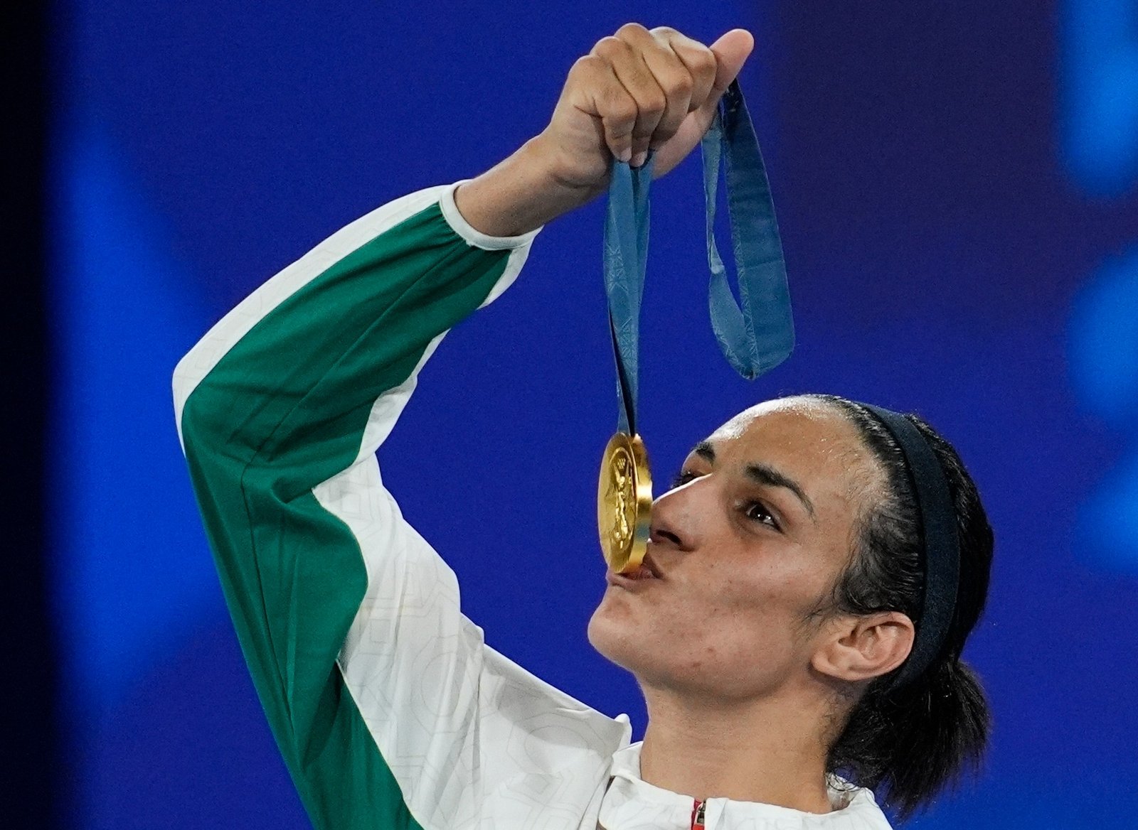 Algerian gold medallist says she has ‘nothing to hide’ and vows to defend her title at the 2028 Summer Games in the US.
