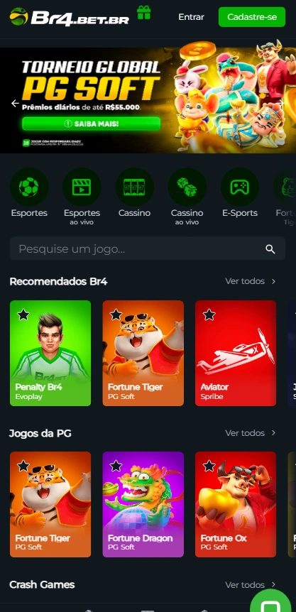O Br4Bet oferece diversidade de jogos de estúdios consagrados como Pragmatic Play, Evolution Gaming, PG Soft, NetEnt e Play’n GO. A oferta inclui: