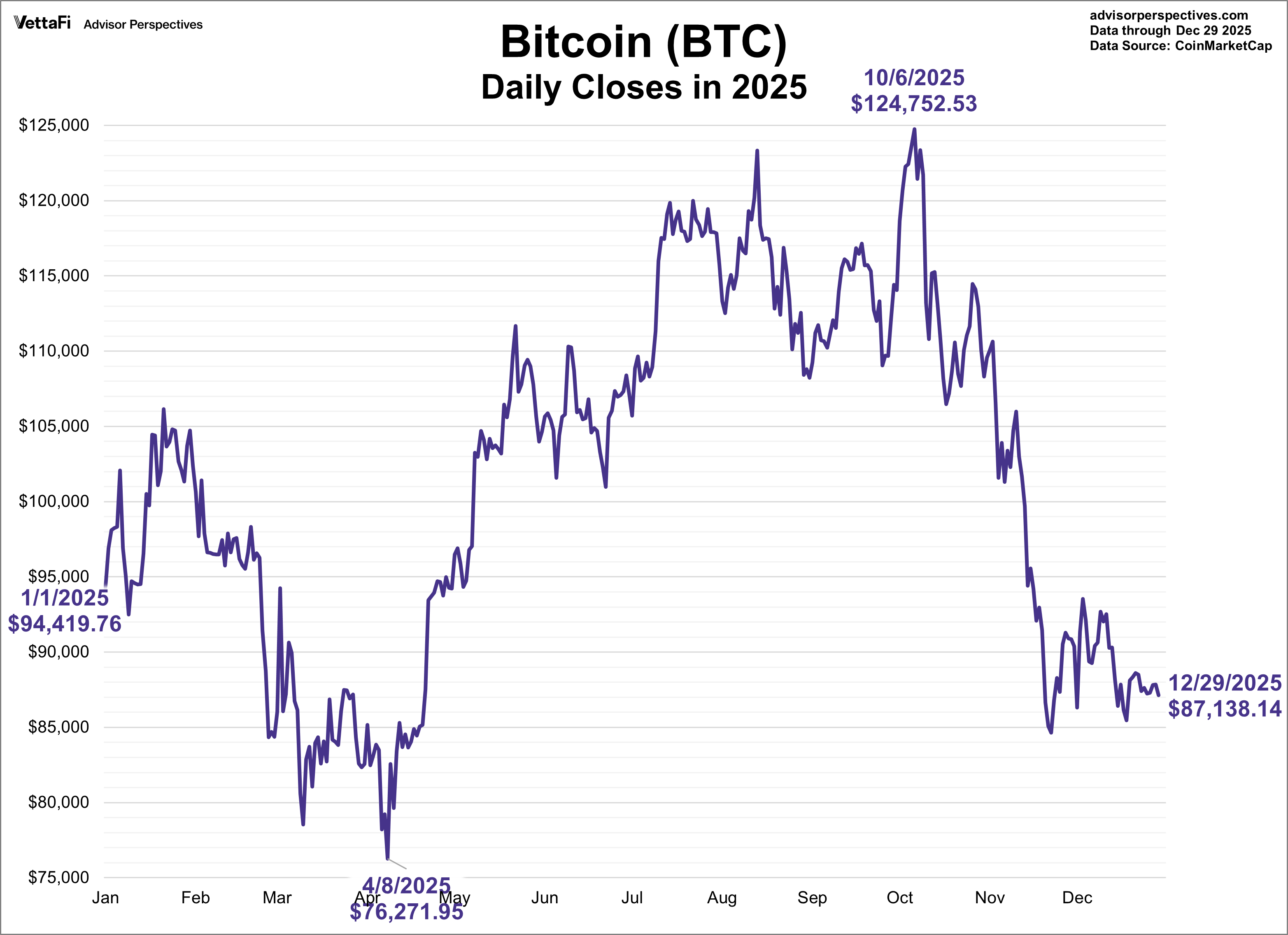 Bitcoin’s closing price hovered around $87,000 this past week. BTC is now down ~8% year-to-date and is sitting ~30% below its record close from October 2025.