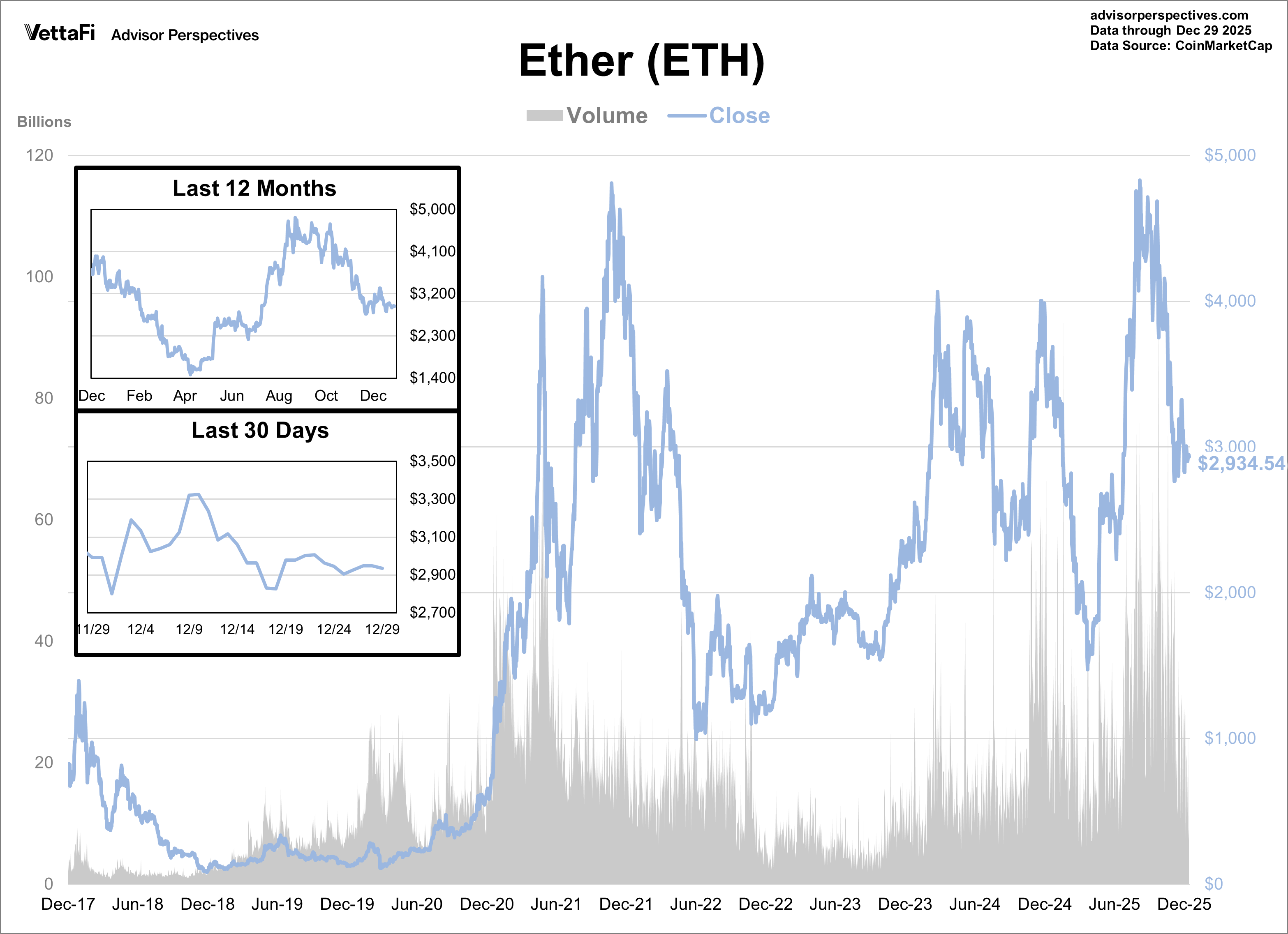 Ether’s closing price stayed between $2,900 and $3,000 this past week. ETH is now down ~12% year-to-date and is ~39% below its record close from August 2025.