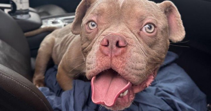 An emaciated English bulldog mix was found wandering near McNair Secondary School in Richmond and is now in the care of the BC SPCA.