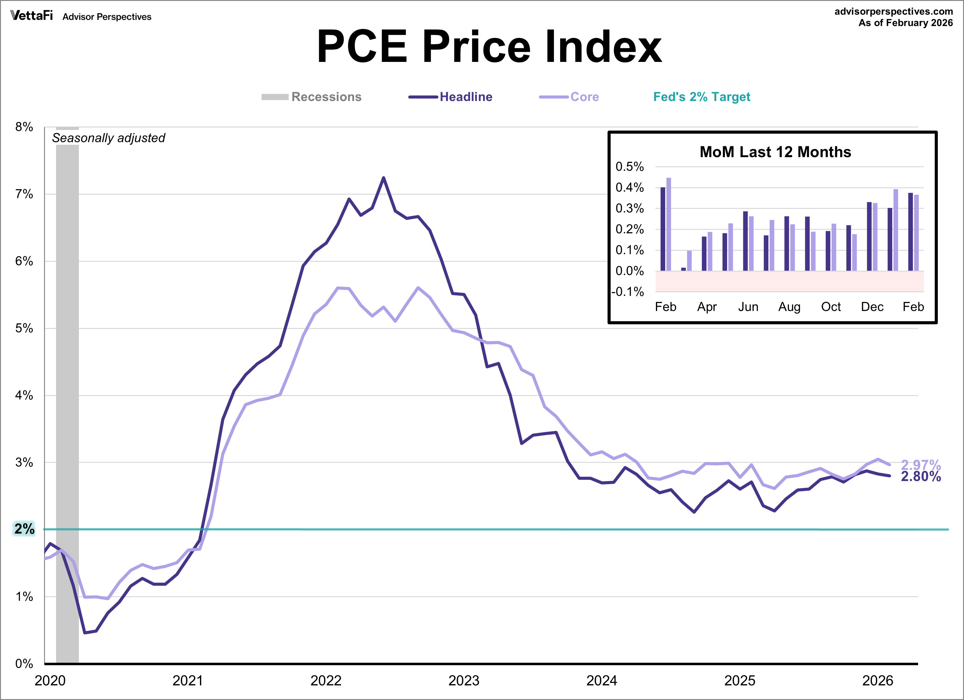 The Federal Reserve’s preferred inflation gauge, the Core Personal Consumption Expenditures (PCE) Price Index, revealed that inflation was already heating up prior to the recent conflict. The delayed data shows the Core PCE Index rose 3.0% year-over-year in February, remaining well above the Fed’s target. This core figure, which strips out volatile food and energy costs, matched expectations and slowed slightly from January’s 3.1% reading. The headline PCE index followed a similar trajectory, increasing 2.8% annually, which matched both the prior month’s data and expectations. On a monthly basis, both core and headline prices climbed 0.4%, marking the sharpest monthly increase in a year. This underlying momentum, combined with the conflict’s immediate effect on energy prices and March’s CPI reading, suggests inflation is expected to jump sharply in March as gas prices have surged beyond $4.