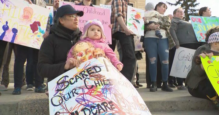 On Tuesday, Saskatchewan’s NDP was joined by parents and child-care workers at a rally calling on the Saskatchewan government to sign the extension agreement for $10-a-day child care.