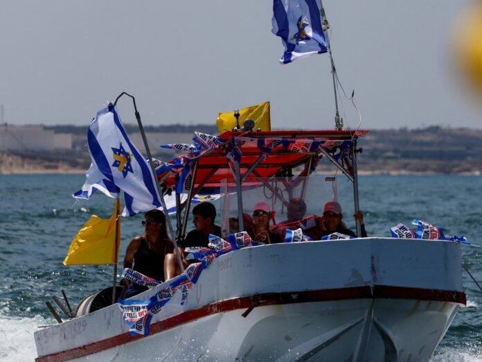 HomeWorldFamilies of Israeli captives sail near Gaza to call for a ceasefire...