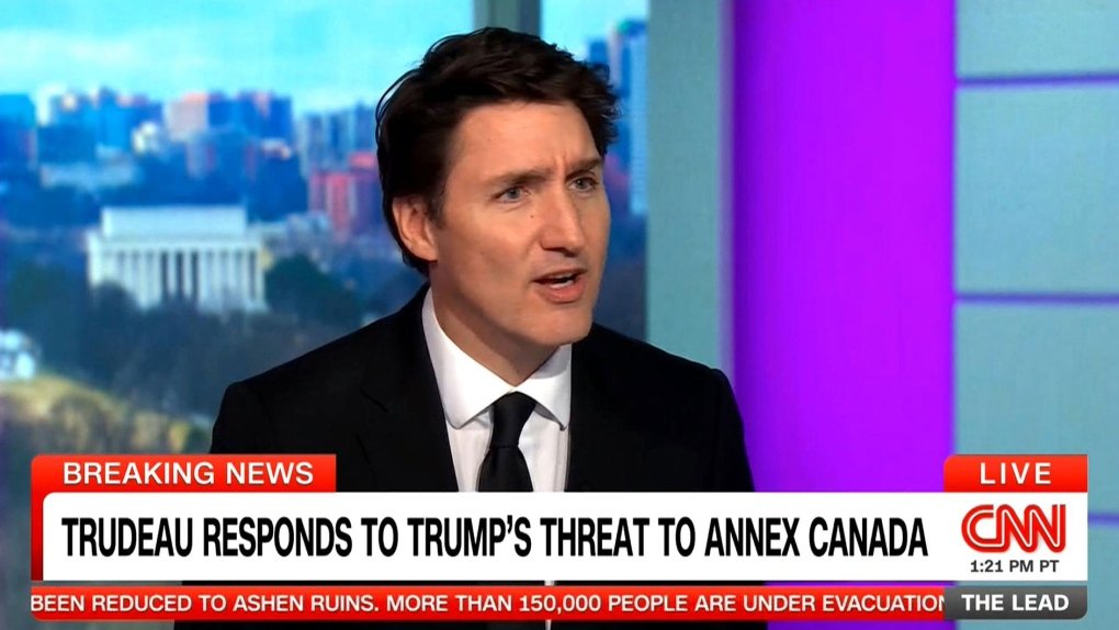 Trudeau said he thinks Trump is doing this to take focus off the reality that “25 per cent tariffs on oil and gas, and electricity, and steel and aluminum, and lumber and concrete, and everything the American consumers buy from Canada is suddenly going to get a lot more expensive if he moves forward on these tariffs.”