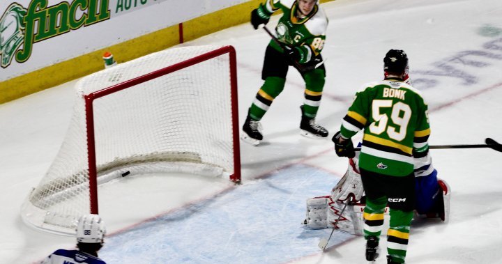 The victory extended London’s winning streak to five games. They now have at least one point in 11 consecutive games and stretched their lead to four points atop the Ontario Hockey League standings.