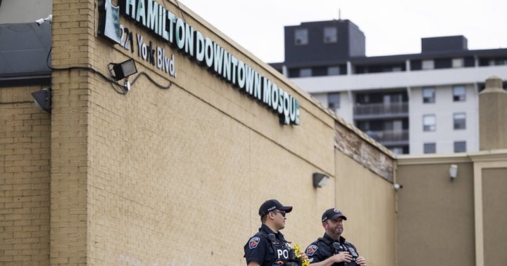 Hamilton police say the incident began outside the mosque before continuing inside and left three people with non-life-threatening injuries.