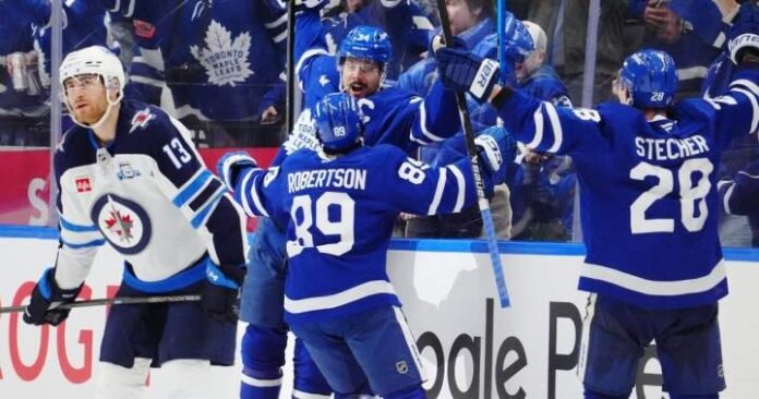 TORONTO – Captain Auston Matthews registered his 14th career hat trick, including the game-winner, to lead the Toronto Maple Leafs to a 6-5 comeback win against the struggling Winnipeg Jets on Thursday.