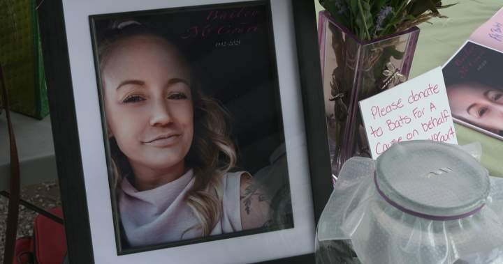 Family and friends of Bailey McCourt gathered Saturday night to remember the Kelowna mother of two, weeks after she was killed in a daylight attack in a parking lot.
