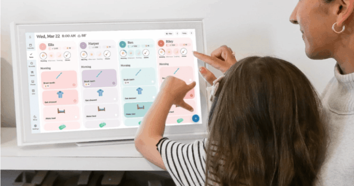 In addition to being a great digital calendar, the Skylight offers a task management function, so you can keep track and tick off all your completed to-dos. And, for a paid subscription to Calendar Plus ($110 for the year, but you can bundle it with a calendar purchase for less), you also get access to additional premium features such as a digital photo frame that acts as a focal point and conversation piece when the Skylight is in sleep mode (this is one of our family’s favourite features–our kids love seeing themselves in their favourite moments). There is also a customizable chore chart for your littles with awards for completion to help keep them on track and even a digital meal planner, so no one has to ask, “what’s for dinner?”