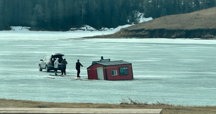 When officers arrived they discovered an ice fishing shack that had broken through the ice along with several people in a vehicle on the same section of ice who were attempting to pull the structure out of the ice.