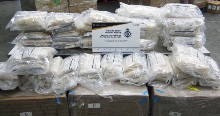 Large shipments of Canada-bound meth and cocaine worth nearly $3 million were seized at the Alberta border on two different days back in December and January.