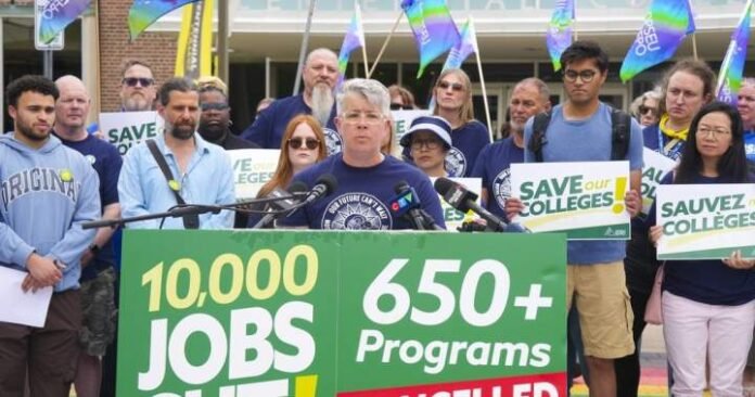The union, which also represents faculty at Ontario colleges, states that nearly 10,000 college faculty and staff have either been laid off or are projected to lose their jobs amid hundreds of program cancellations and suspensions since last year.