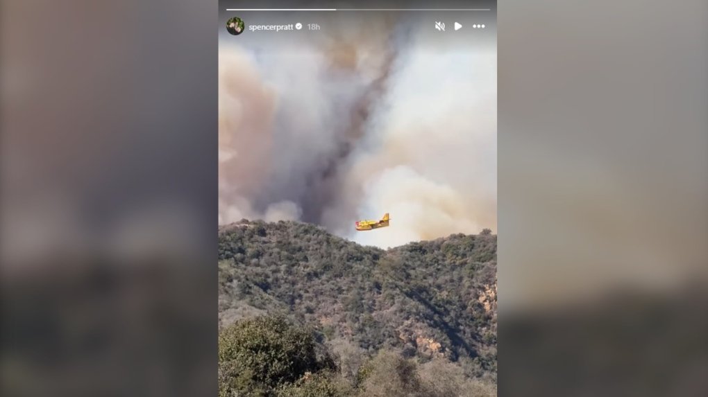 This screengrab shows a firefighting plane making a pass over Los Angeles (Spencer Pratt via Instagram)