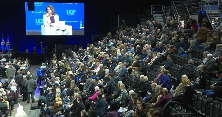 Smith took the stage for the first of many addresses planned for the weekend, but it wasn’t until someone in the crowd asked for clarification on Alberta’s commitments in the deal that Smith talked about it.