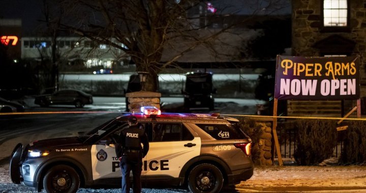 Three suspects remain at large after they entered Piper Arms at 520 Progress Ave., as diners celebrated the pub’s opening night. Police say they “indiscriminately” opened fire before fleeing the area in a silver car.