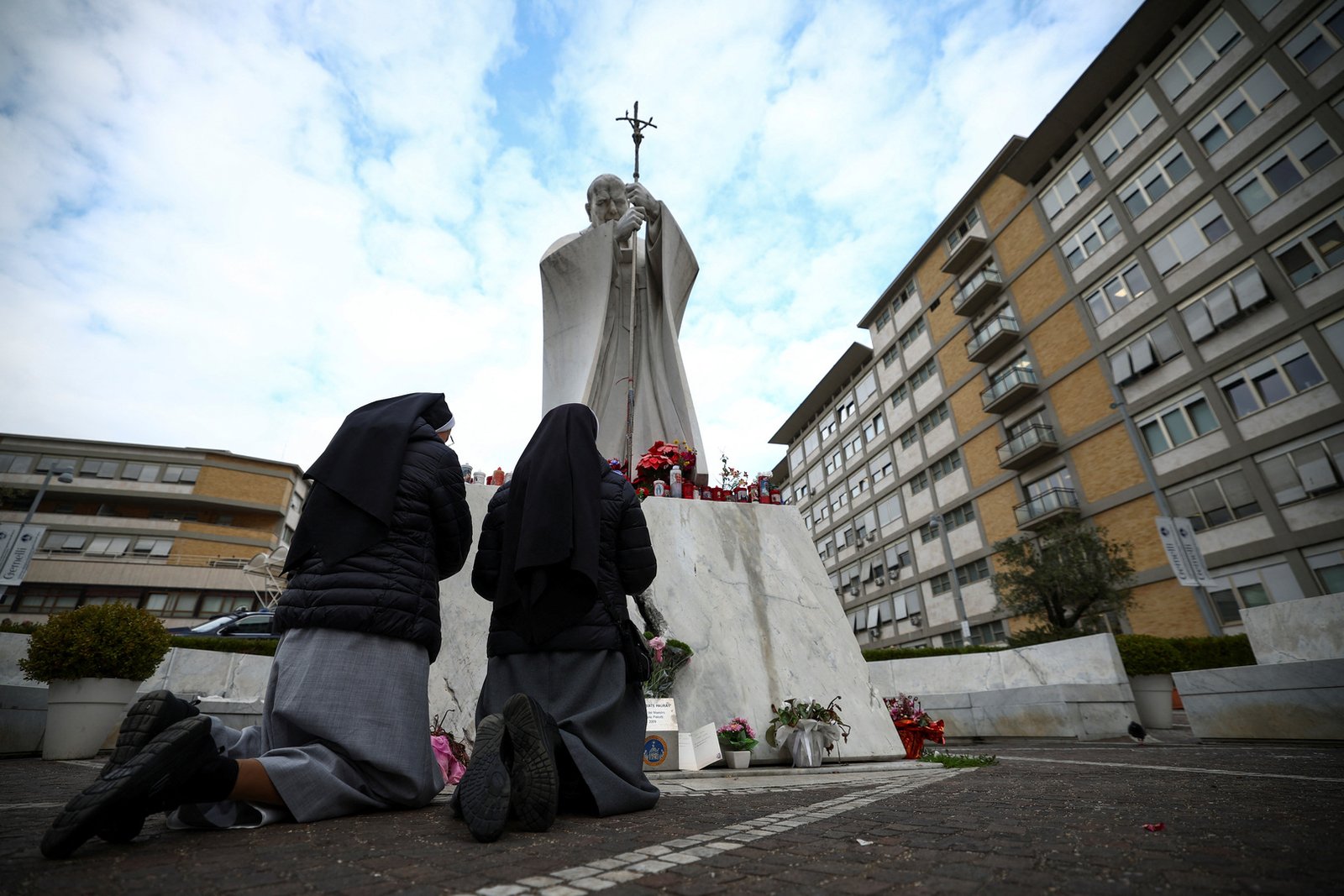 Supporters of Pope Francis gathered outside Rome’s Gemelli Hospital to pay tribute to the 88-year-old.