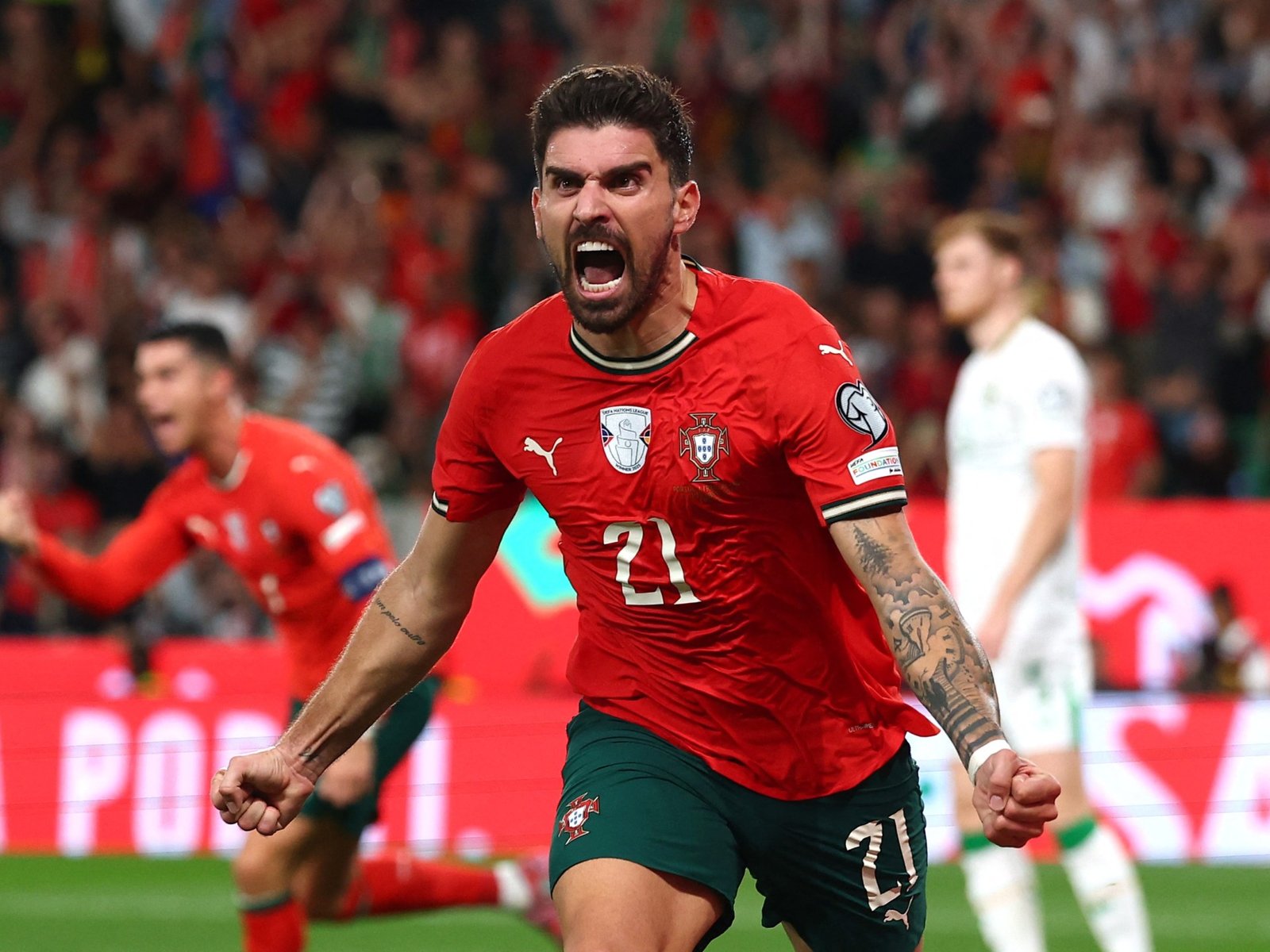 Portugal’s Ruben Neves scored a stoppage-time goal to snatch a 1-0 win over Ireland, which preserved Portugal’s 100 percent record in World Cup qualifying Group F and consolidated the top spot.