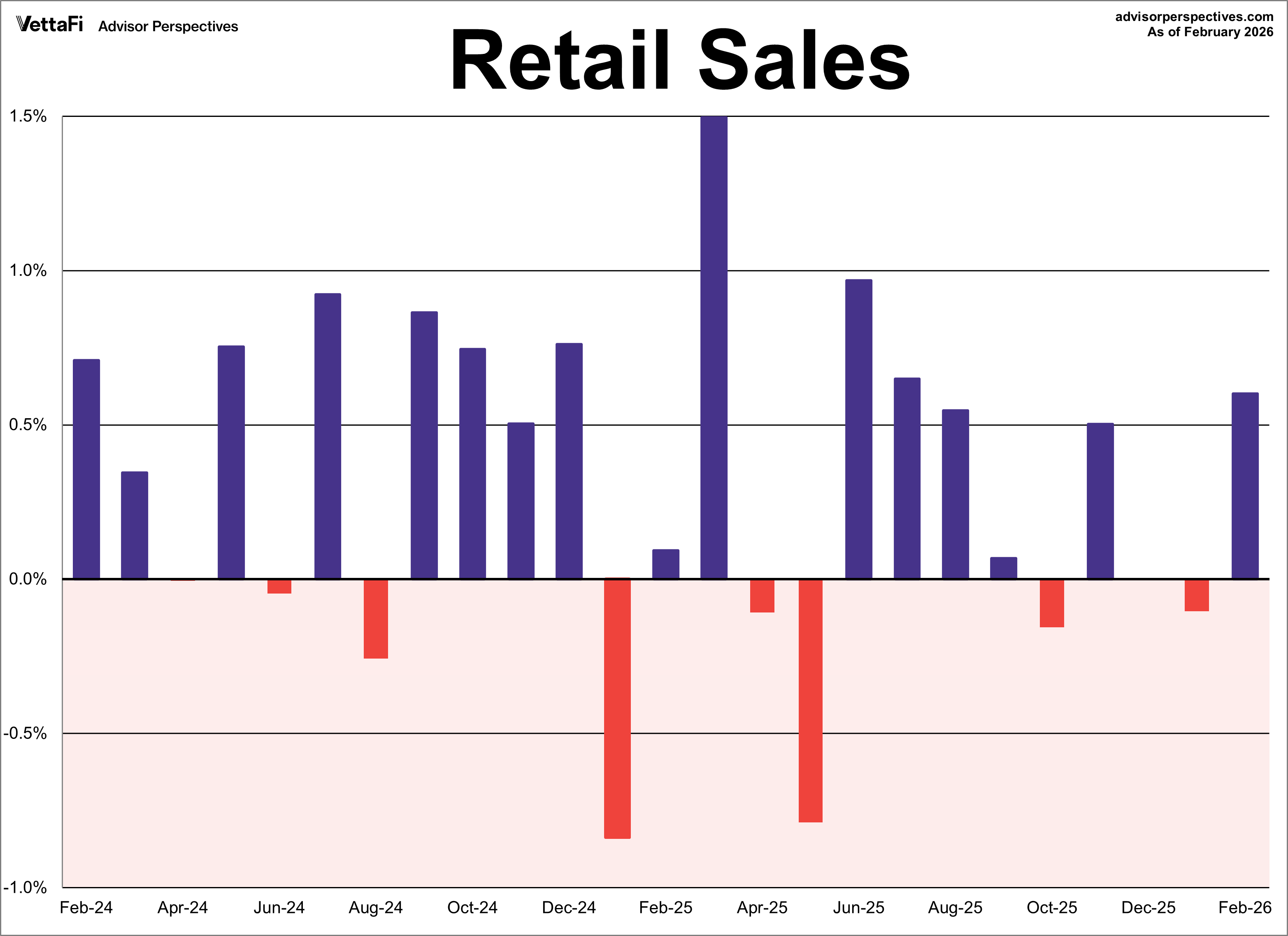 The Advance Retail Sales Report from the Census Bureau showed consumer spending was more robust than expected in February. Headline sales rose 0.6%, a step up from January’s 0.1% decline and better than the projected 0.5% growth.