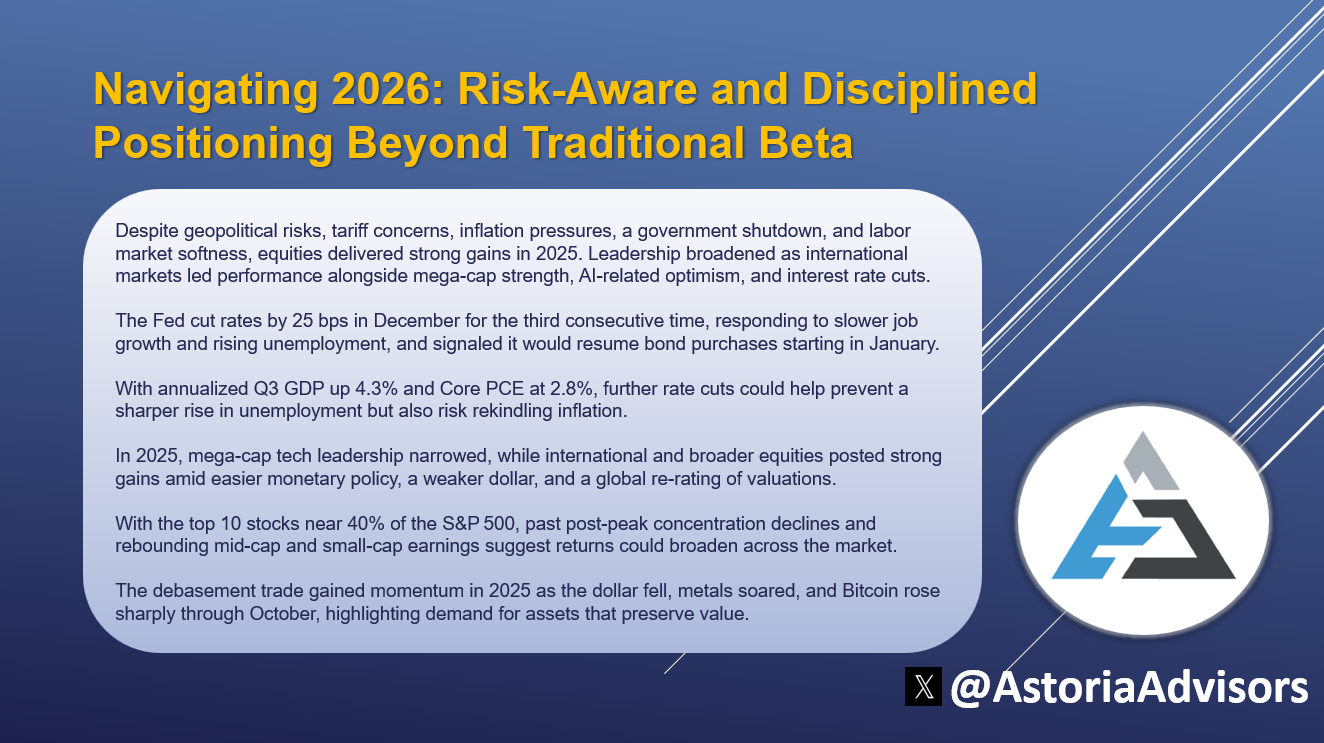 At its core, investing remains about acquiring assets below intrinsic value, identifying catalysts, and capturing favorable convexity. Navigating 2026 will likely benefit from discipline, a thoughtful, risk-aware approach, and openness to strategies beyond traditional beta.