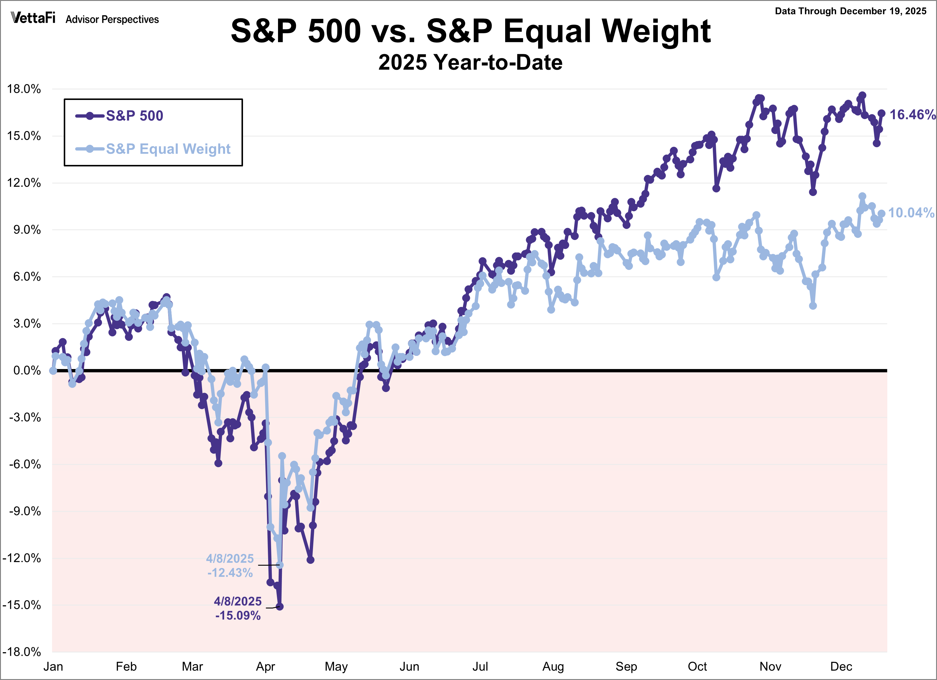 The S&P 500 is currently up 16.46% year to date, while the S&P Equal Weight is up 10.04% year to date.