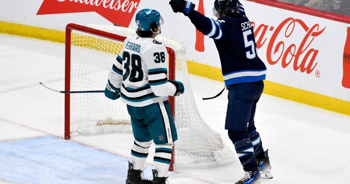 The Jets badly outshot the NHL’s last place Sharks 35-18, but they couldn’t solve goalie Vitek Vanecek until the final minute of regulation when Josh Morrissey scored the equalizer.