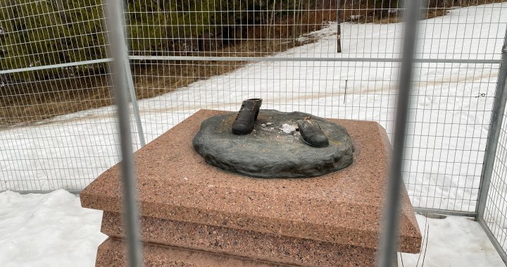 Only the shoes remain of the statue, says David Turnbull of the Edmonton Arts Council.