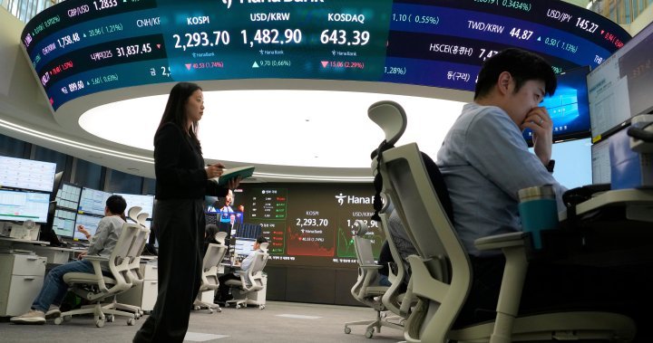 Taiwan led the losses in Asia, as its Taiex plunged 5.8 per cent. Big tech industries were among the biggest decliners. Computer chip giant TSMC Corp. dropped 3.8 per cent while iPhone maker Hon Hai Precision Industry plunged 10 per cent.