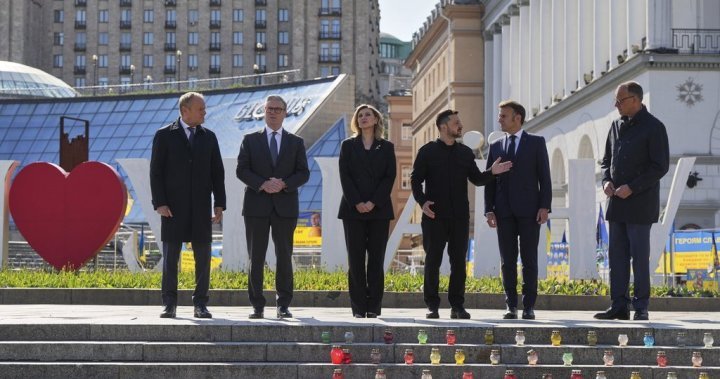 Leaders from four major European countries threatened to ratchet up pressure on Russian President Vladimir Putin if he does not accept an unconditional 30-day ceasefire in Ukraine that they offered on Saturday in a strong show of unity with Kyiv.