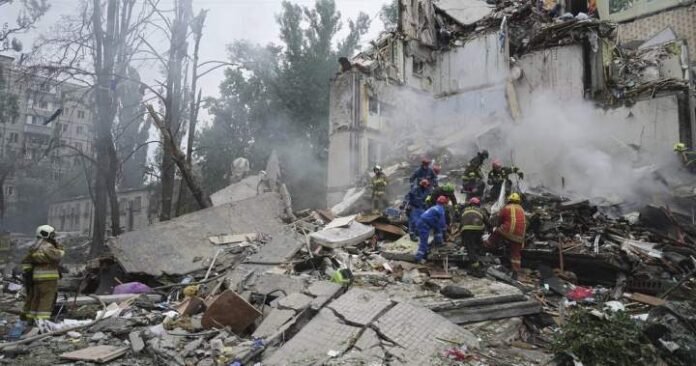 The death toll rose overnight as emergency crews continued to dig through rubble. The Russian barrage demolished a large part of a nine-story residential building in the city, while more than 100 other buildings were damaged, including homes, schools, kindergartens, medical facilities and universities, officials said.