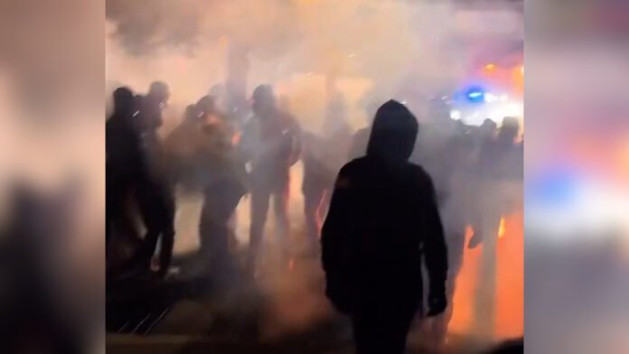 Police in the US city of Portland used tear gas and stun grenades to disperse protesters outside an ICE building.