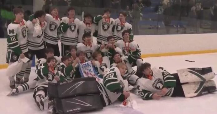 Aiden Dilay scored twice in the championship game, including an empty netter to seal the championship victory. Will Bader and Carter Kaczmarz also scored for Vincent Massey in the win. Adam Blair recorded two assists, while Karsten Ross notched Oak Park’s lone goal in the loss.