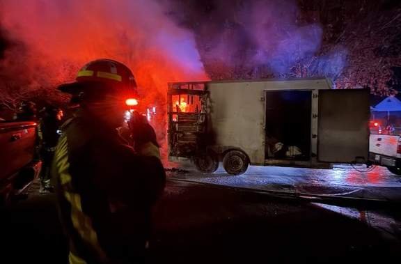 He says that arriving crews found a truck and trailer on fire, with fire coming close to the house.