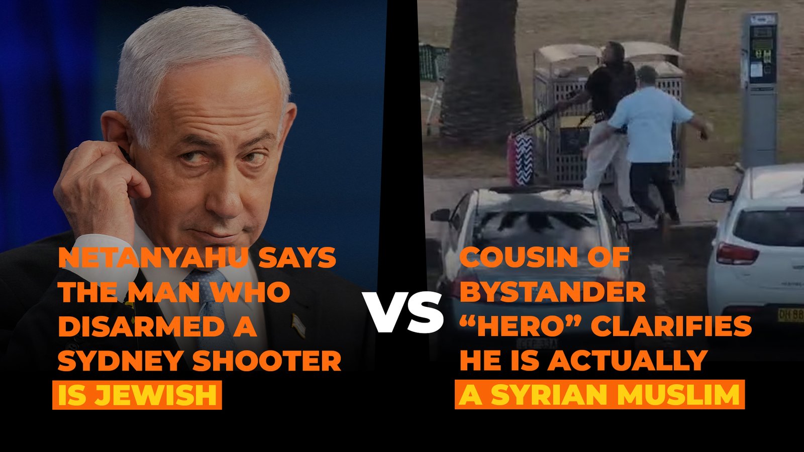 We compare and contrast Netanyahu calling the Bondi shooter’s disarmer Jewish vs. his cousin saying he’s Syrian Muslim.