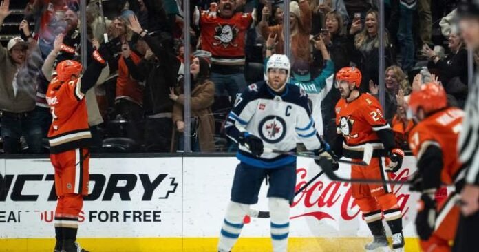 On the ensuing power play, the Jets worked the puck around the Anaheim zone before Kyle Connor fed Gabriel Vilardi for a quick-trigger snapshot from the slot that glanced off the shaft of Dostal’s stick and into the net at the 2:25 mark.